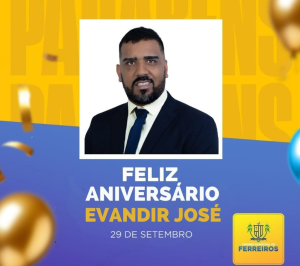Desejamos ao Vereador Evandir José um Feliz aniversário! Que este novo ciclo seja repleto de saúde, realizações e muitas conquistas.